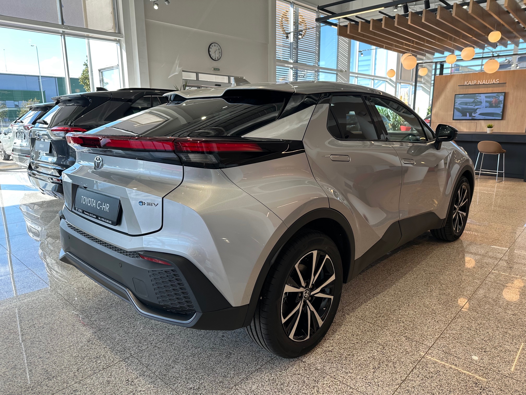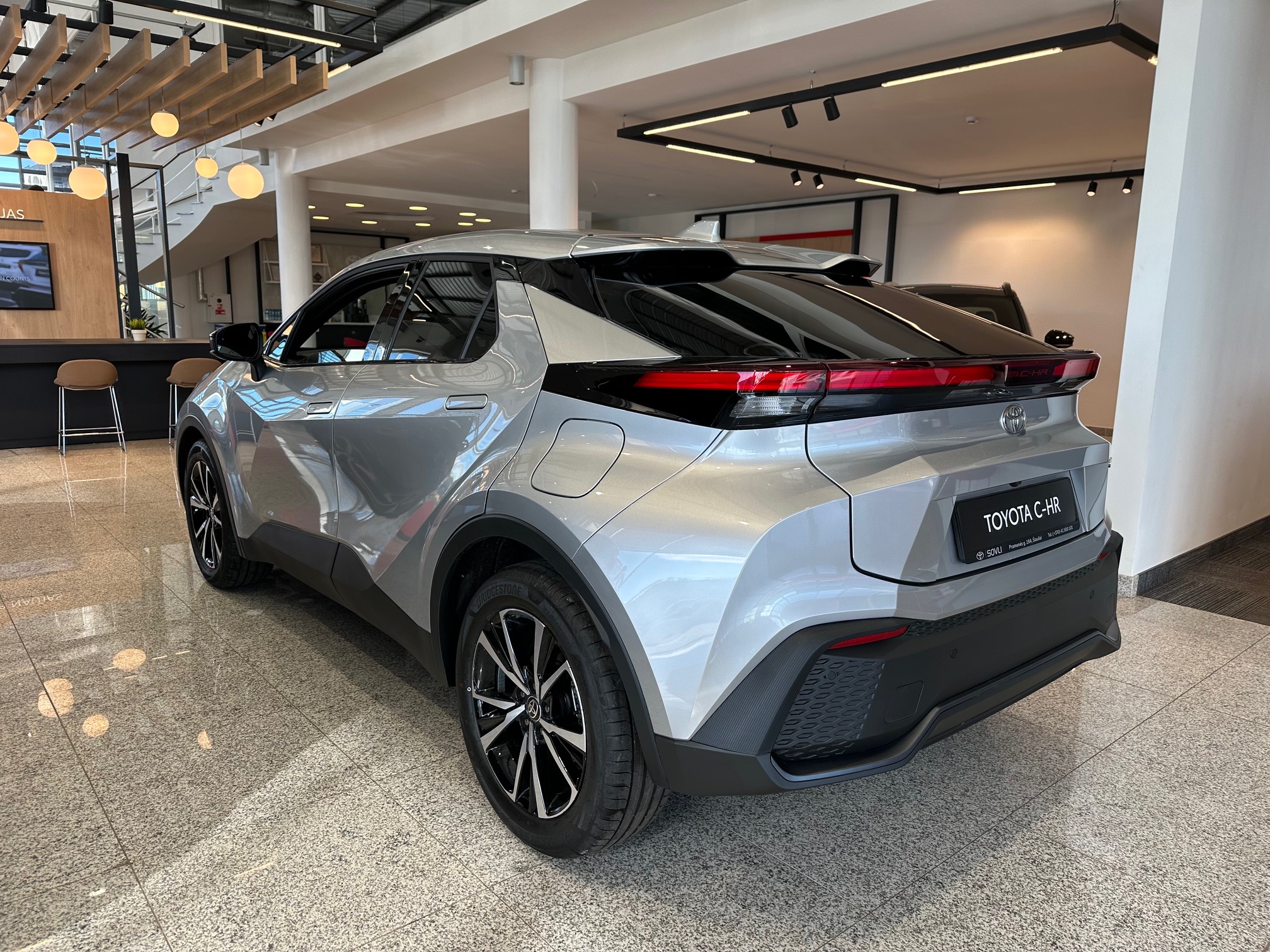 18 colių juodi lengvojo lydinio ratlankiai tekintu paviršiumiLED priekiniai ir galiniai žibintaiTekstilinės sėdynėsŠildomos priekinės sėdynėsDviejų zonų automatinis oro kondicionieriusBelaidis telefono kroviklisŠildomas vairasSmart Entry & Start sistemaIšmanieji priekiniai parkavimo jutikliai su automatinio stabdymo funkcija (aptikus objektą)Išmanieji galiniai parkavimo jutikliai su automatinio stabdymo funkcija (aptikus objektą, automobilį)Toyota Smart Connect+ multimedijos sistema:12,3 colių multimedijos sistemos ekranasInternetinio naujinimo funkcijaDebesų navigacija (paslaugos abonementas, 4 metų bandomasis laikotarpis nemokamai)Balso agentas (paslaugos abonementas, 4 metų bandomasis laikotarpis nemokamai)Įvykiai kelyje (paslaugos abonementas, 4 metų bandomasis laikotarpis nemokamai)Integruotoji navigacijos sistemaMobiliojo telefono integracija (Apple CarPlay & Android Auto)Skaitmeninis radijas (DAB)6 garsiakalbiaiBluetooth® laisvųjų rankų įrangaPriekinė USB jungtisPriekinė USB C tipo jungtisGalinė USB C tipo jungtisMyT standartinės paslaugos (paslaugos abonementas, 10 metų bandomasis laikotarpis nemokamai)Toyota Smart Connect paketas (paslaugos abonementas, 4 metų bandomasis laikotarpis nemokamai):Nuotolinis durelių užrakinimas / atrakinimasPerspėjimo žibintų nuotolinio įjungimo/išjungimo funkcijaNuotoliniu būdu valdoma oro kondicionavimo sistemaGalinio vaizdo kameraToyota Safety Sense:Priešavarinė sistema su pėsčiųjų ir dviratininkų bei motociklininkų (dieną) aptikimo funkcijaGreitėjimo slopinimas važiuojant mažu greičiuPriešavarinė sistemos avarinio vairavimo pagalba (dieną)Priešavarinės sistemos priešais atvažiuojančių automobilių ir motociklų aptikimo funkcija (dieną)Priešavarinė sistema su susidūrimo vengimo sankryžoje pagalbaIšmani adaptyvioji pastovaus greičio palaikymo sistema (iACC)Nukrypimo iš važiuojamosios juostos įspėjimo sistema (LDA) su vairo pakoregavimo funkcijaEismo juostos stebėjimo sistema (LTA)Automatinė tolimųjų šviesų sistema (AHB)Pagalbinė kelio ženklų atpažinimo sistema (RSA)Toyota Safety Sense internetinio naujinimo funkcijaAvarinio sustojimo pagalbaAktyvioji vairavimo pagalbos sistema (PDA)Nematomų zonų monitorius (BSM)Perspėjimo apie iš galo artėjančius automobilius sistema (RCTA)