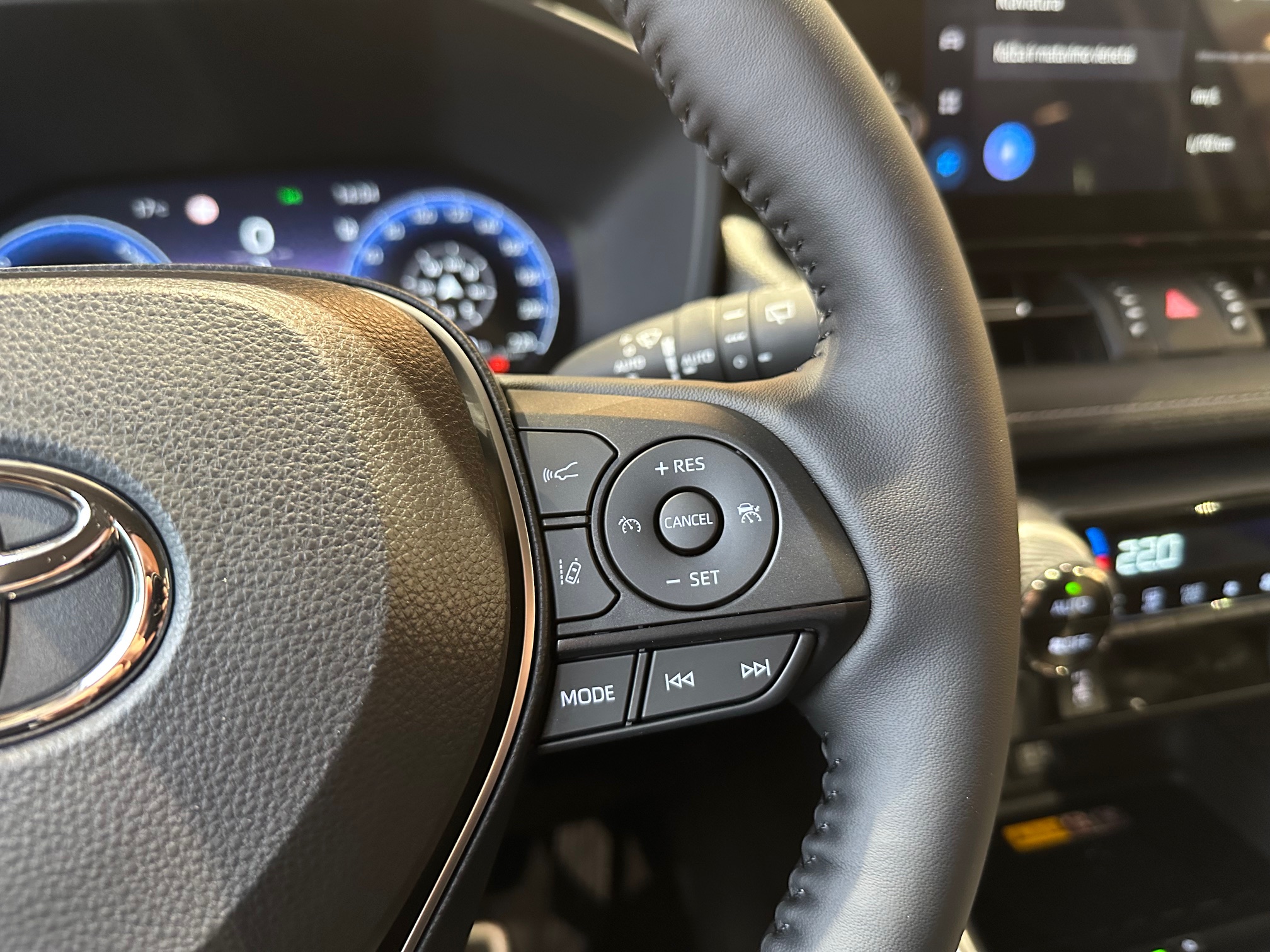 18 colių 5 stipinų lengvojo lydinio ratlankiai su 225/60 R18 padangomisLED priekiniai ir galiniai žibintaiTamsinti stiklaiŠildomas vairasNuotolinis durelių užrakinimas / atrakinimasNuotoliniu būdu valdoma oro kondicionavimo sistemaBelaidis telefono kroviklisPriekiniai automobilio statymo jutikliaiGaliniai automobilio statymo jutikliaiJuodi tekstiliniai sėdynių apmušalaiŠildomos priekinės sėdynėsToyota Smart Connect multimedijos sistema:4 metų debesų navigacijos abonementasTikrojo laiko eismo pranešimaiBalso agentasInternetinio naujinimo funkcija10,5 colių multimedijos sistemos ekranasDebesijos navigacijaMobiliojo telefono integracija (Apple CarPlay & Android Auto™)12,3 colių spalvotas TFT daugiafunkcis ekranasGalinio vaizdo kameraSkaitmeninis radijas (DAB)6 garsiakalbiaiUSB jungtys (C ir A tipo)Bluetooth® laisvųjų rankų įrangaPre-Collision sistema (PCS) su pėsčiųjų ir dviratininkų fiksavimo funkcijaApsaugos nuo susidūrimo sankryžose sistema (ICM)Avarinio vairo valdymo sistemaNukrypimo iš važiuojamosios juostos įspėjimo sistema (LDA) su vairo valdymo ir automobilio išlaikymo eismo juostos centre funkcijomisEismo juostos stebėjimo sistema (LTA)Išmanioji adaptyvioji pastovaus greičio palaikymo sistema (iACC)Pagalbinė kelio ženklų atpažinimo sistema (RSA)Automatinė tolimųjų šviesų sistema (AHB)Priminimo apie neužsegtus galinius saugos diržus sistema (RSRS)