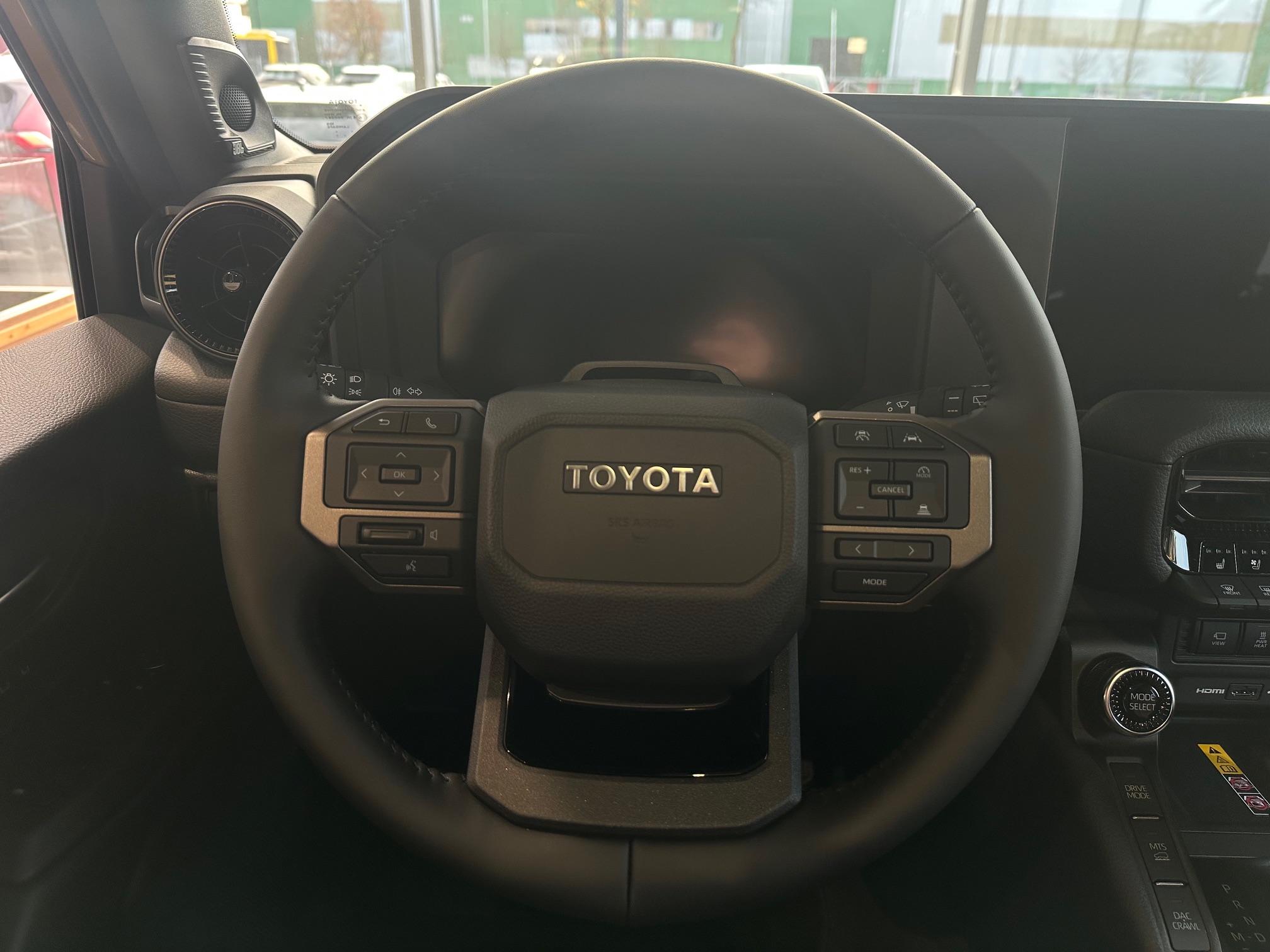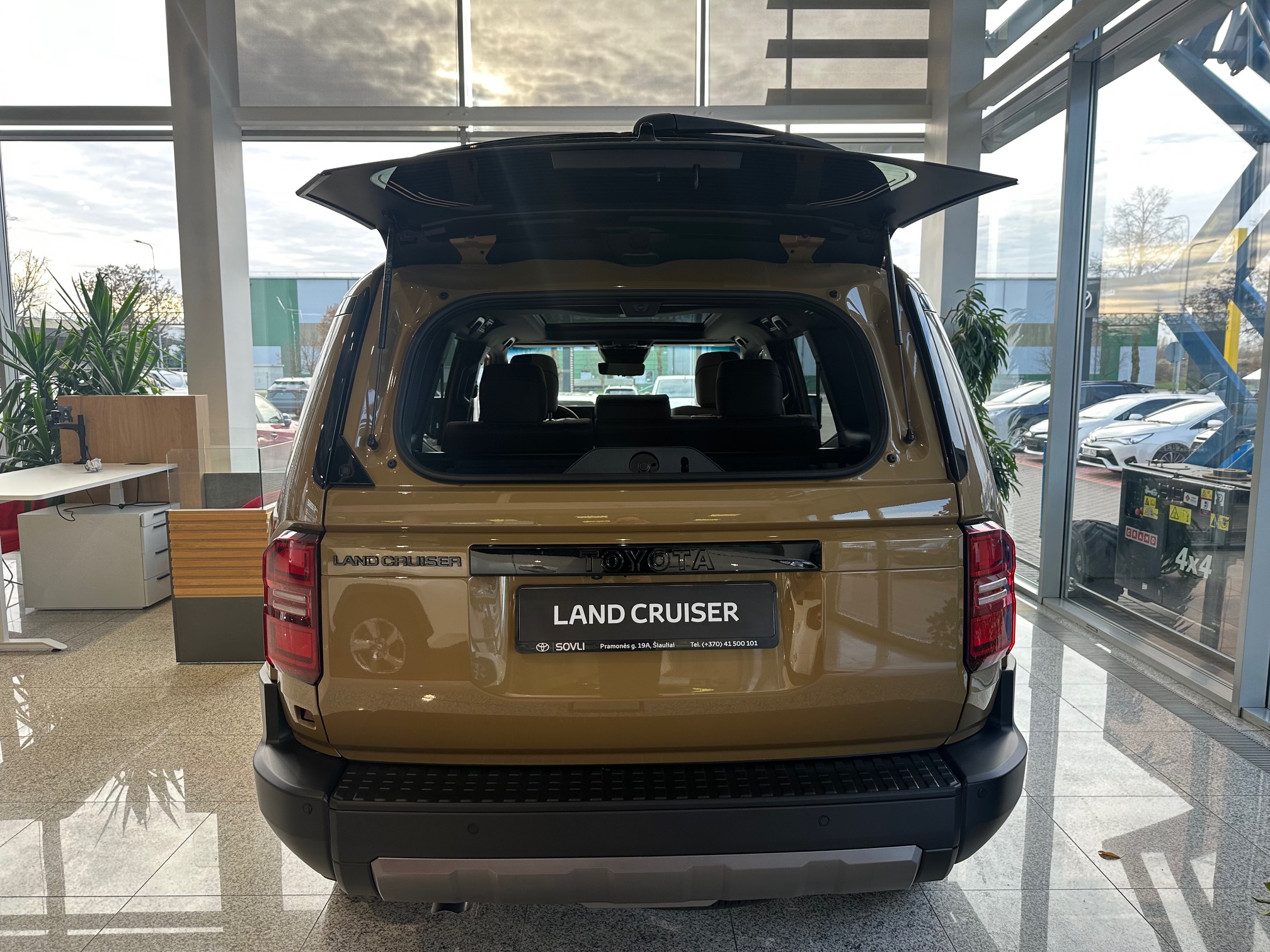 20 colių lengvojo lydinio ratlankiai (265/60R20)Priekiniai LED žibintai su adaptyviąja tolimųjų žibintų sistema (AHS)Tamsinti stiklaiOdiniai sėdynių apmušalaiVairuotojo sėdynė su nustatymų atminties funkcijaŠildomos priekinės sėdynėsPriekinės sėdynės su vėdinimo funkcijaŠildomos ir vėdinamos 2 eilės šoninės sėdynėsPriekinio lango stiklo ledo atitirpinimo funkcijaGalinio vaizdo kamera su plovikliuPanoraminio vaizdo monitoriusIšmanieji priekiniai parkavimo jutikliai su automatinio stabdymo funkcija (aptikus objektą, automobilį, pėsčiąjį)Išmanieji galiniai parkavimo jutikliai su automatinio stabdymo funkcija (aptikus objektą, automobilį, pėsčiąjį)Šildomas vairasSkaitmeninis galinio vaizdo veidrodėlisPanoraminis stoglangisTrijų zonų automatinis oro kondicionieriusOro kondicionieriaus valdymo skydelis galeSmart Entry & Start sistemaToyota Smart Connect paketas (paslaugos abonementas, 4 metų bandomasis laikotarpis nemokamai):Nuotolinis durelių užrakinimas / atrakinimasPerspėjimo žibintų nuotolinio įjungimo/išjungimo funkcijaNuotoliniu būdu valdoma oro kondicionavimo sistemaRadijas, DABToyota Smart Connect+ multimedijos sistema:12,3 colių multimedijos sistemos ekranasInternetinio naujinimo funkcijaDebesų navigacija (paslaugos abonementas, 4 metų bandomasis laikotarpis nemokamai)Balso agentas (paslaugos abonementas, 4 metų bandomasis laikotarpis nemokamai)Įvykiai kelyje (paslaugos abonementas, 4 metų bandomasis laikotarpis nemokamai)Integruotoji navigacijos sistemaFiksuotieji greičio matuokliai (paslaugos abonementas, 4 metų bandomasis laikotarpis nemokamai)Orų paslaugaMobiliojo telefono integracija (Apple CarPlay & Android Auto)JBL Premium garso sistema ir 14 garsiakalbiųBluetooth® laisvųjų rankų sistema12,3 colių spalvotas TFT daugiafunkcis ekranasProjekcinis ekranasBelaidis telefono kroviklisNuolatinio veikimo visų varomųjų ratų sistema (4WD)Centrinio diferencialo blokatorius su TORSEN® riboto slydimo diferencialu (LSD)Galinio diferencialo blokatoriusStabilizatoriaus atjungimo mechanizmas (SDM)Trys važiavimo režimai: Eco, Normal, SportPagalbinė važiavimo bekele sistema Crawl ControlPagalbinė važiavimo nuokalne sistema (DAC)Važiavimo režimo pasirinkimo sistema Multi-terrain Select (MTS)Aplinkos monitorius (360 vaizdo kamera)Signalizacijos sistema ir variklio imobilizatoriusToyota Safety Sense saugos įranga:Priešavarinė sistema su pėsčiųjų ir dviratininkų bei motociklininkų (dieną) aptikimo funkcijaGreitėjimo slopinimas važiuojant mažu greičiuPriešavarinė sistemos avarinio vairavimo pagalba (dieną)Priešavarinės sistemos priešais atvažiuojančių automobilių ir motociklų aptikimo funkcija (dieną)Priešavarinė sistema su susidūrimo vengimo sankryžoje pagalbaIšmani adaptyvioji pastovaus greičio palaikymo sistema (iACC)Eismo juostos stebėjimo sistema (LTA)Automatinė tolimųjų šviesų sistema (AHB)Pagalbinė kelio ženklų atpažinimo sistema (RSA)Avarinio sustojimo pagalbaVairuotojo stebėjimo kameraToyota Safety Sense internetinio naujinimo funkcijaStabdžių antiblokavimo (ABS) ir elektroninė stabdymo jėgos paskirstymo (EBD) sistemosPagalbinė stabdymo sistema (BA)Automobilio stabilumo kontrolės sistema (VSC)Priekabos siūbavimo kontrolės sistema (TSC)Pagalbinė eismo juostos keitimo sistema (LCA)Nematomų zonų monitorius (BSM)Perspėjimo apie iš galo artėjančias transporto priemones sistema (RCTA)Iš priekio artėjančių transporto priemonių fiksavimo sistema (FCTA)Saugaus išlipimo pagalba
